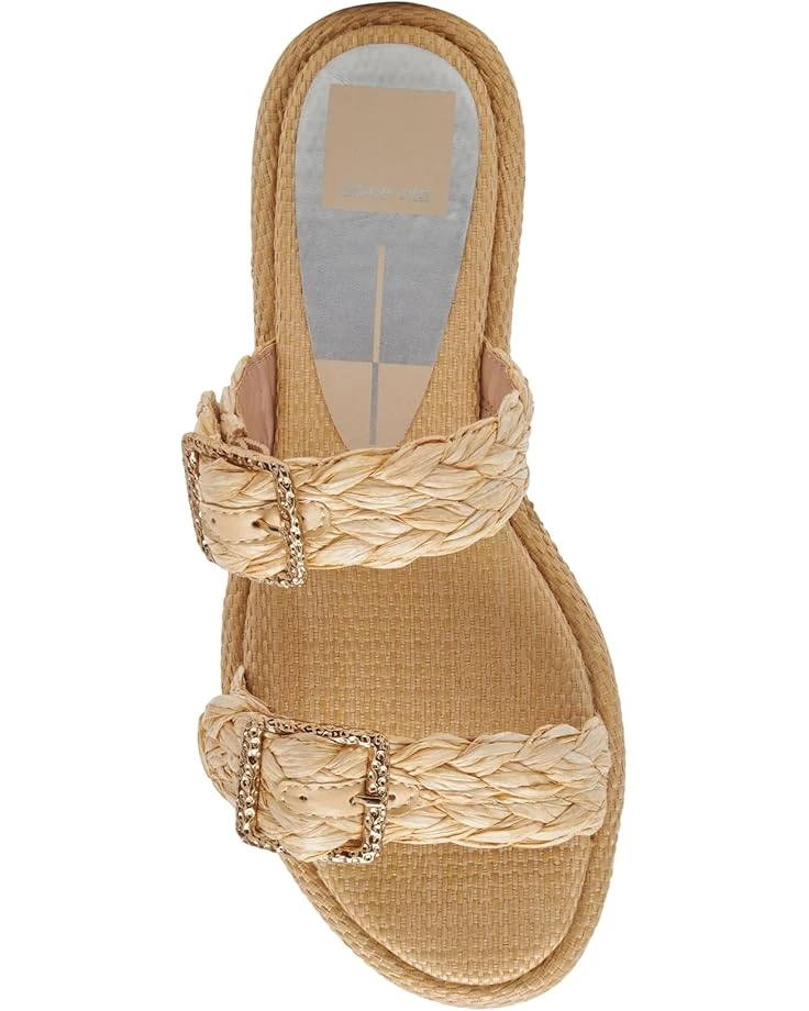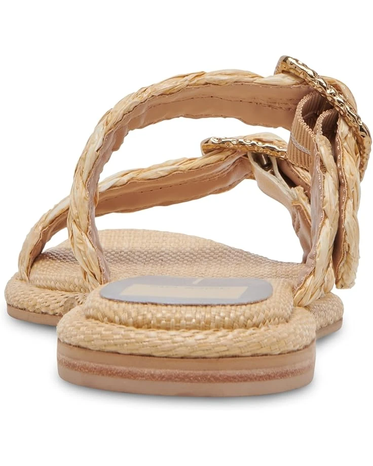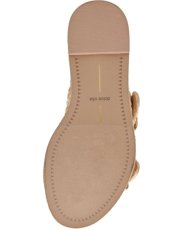 - Be it your casual day outings or weekend getaways, you will enjoy effortless style and comfort throughout the day when you put on the Dolce Vita® Alaina Sandals. Topped with braided raffia-textured faux leather upper straps and integrated with water-based faux leather lining and a cushioned faux leather insole, these slip-on shoes are perfect for long hours of wear. The shimmery buckles on the straps bring on an elegant touch to this footwear.