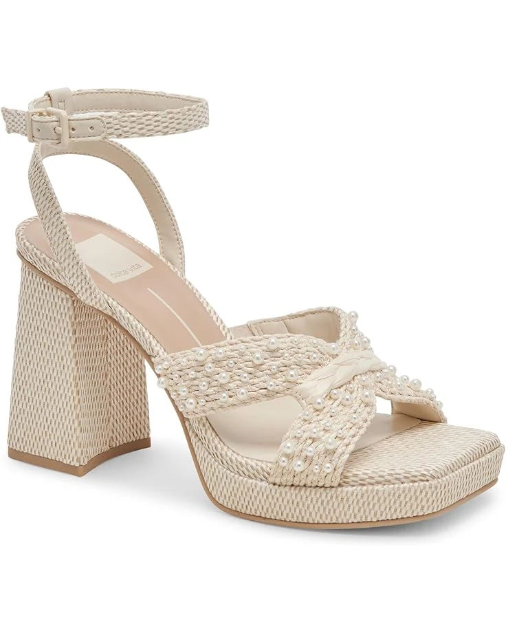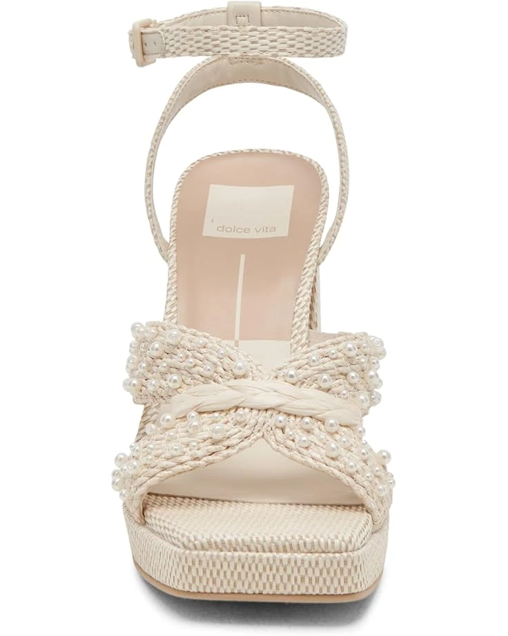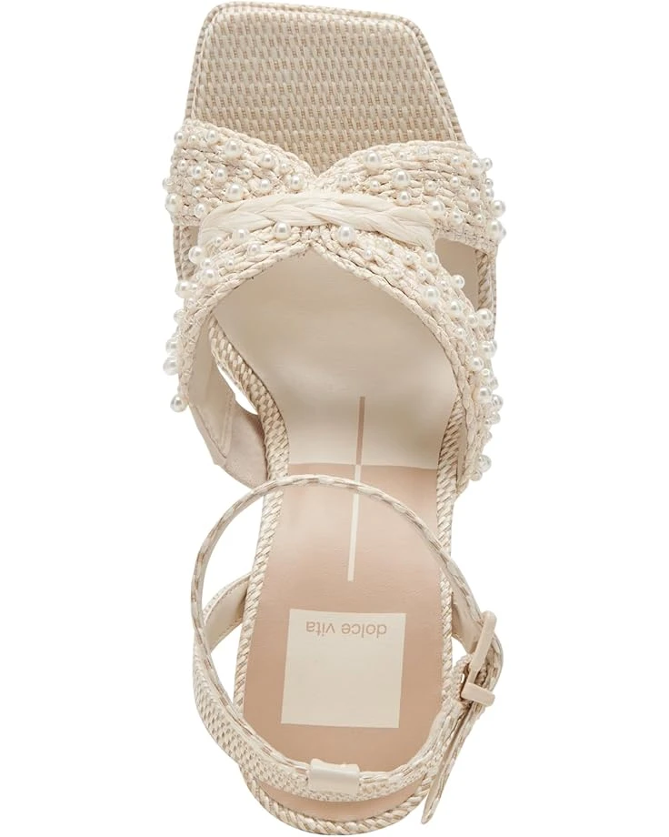 - Be the ethereal enchantment in this beautifully designed Dolce Vitaยฎ Aries Pearl-127 Sandals. The square toe pair features crisscross textile upper straps with pearl embellishments and buckled ankle strap closure.