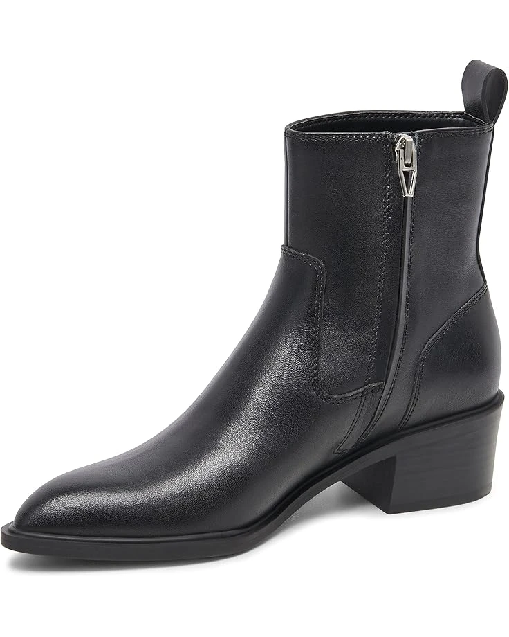 - Opt for a smart and sophisticated look by donning the Dolce Vita® Bili H2O. Lifted by block heels, the waterproof bootie features a polished leather upper and man-made lining. The boots also have a zippered side closure with a pull tab on the back.