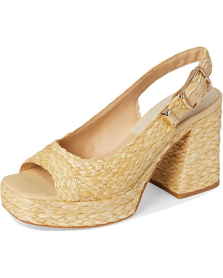 - Slingback strap with buckle closure.