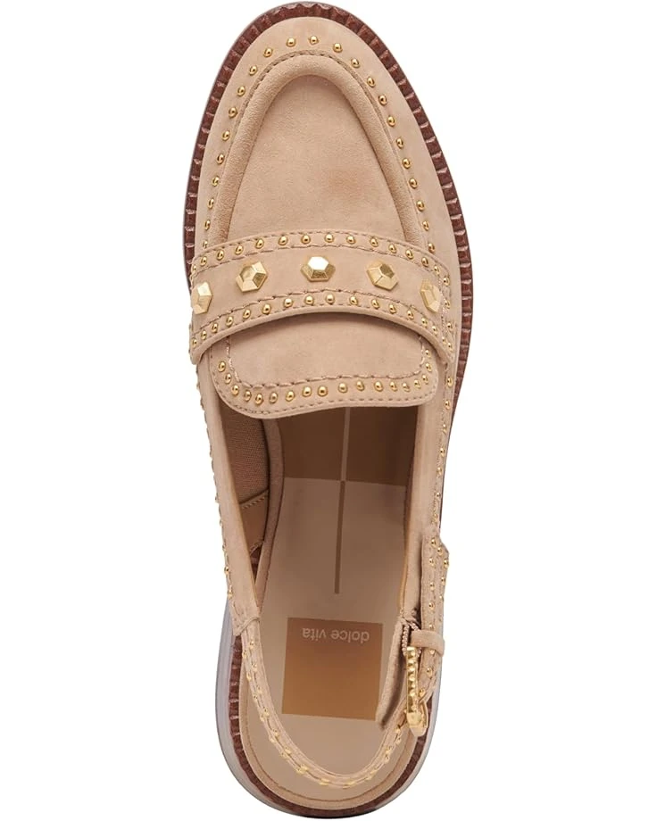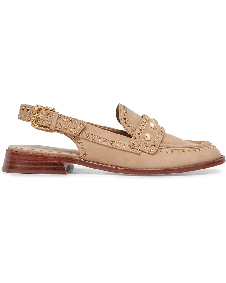 - Unveiling the Dolce Vita® Hardi Stud: Where comfort meets couture in a harmonious dance of sophistication and flair. Slip into sophistication with this loafer-slingback crossover you didn’t know you needed. Crafted with a breathable faux leather lining and leather upper, each step feels luxurious. Complete with a buckle closure and rubber outsole for durability.