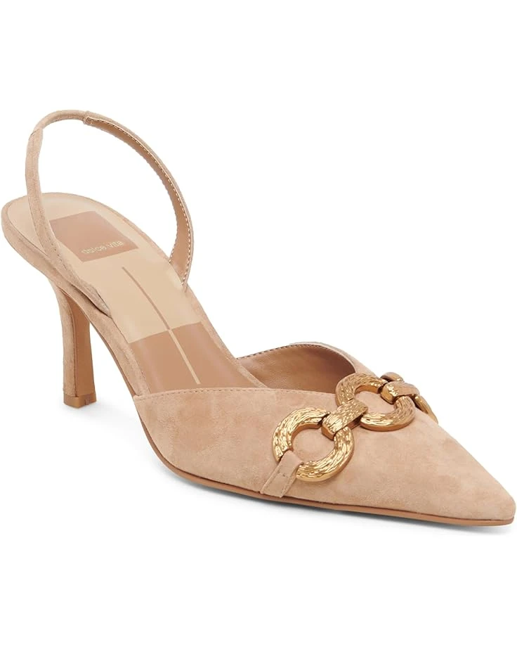 - Match your different outfits and styles wearing the Dolce Vita® Haylee sandals. The suede upper of these sandals features a chain detail for a stylish appeal. These heeled pumps are crafted with a faux leather insole and lining for added comfort and durability. Walk with style and confidence wearing these suede pumps.
