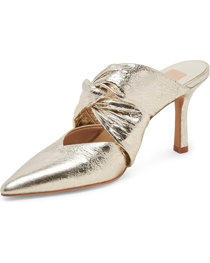 - The shimmery glam of Dolce Vita® Kelsy is enhanced by the twisted front strap and sleek stiletto heel. The slip-on footwear features thermoplastic polyurethane upper with cotton lining and waterbased leather alternative sock for all-day comfort.