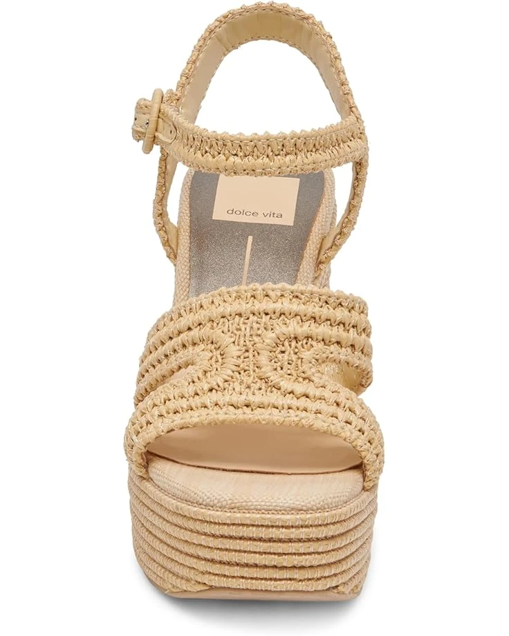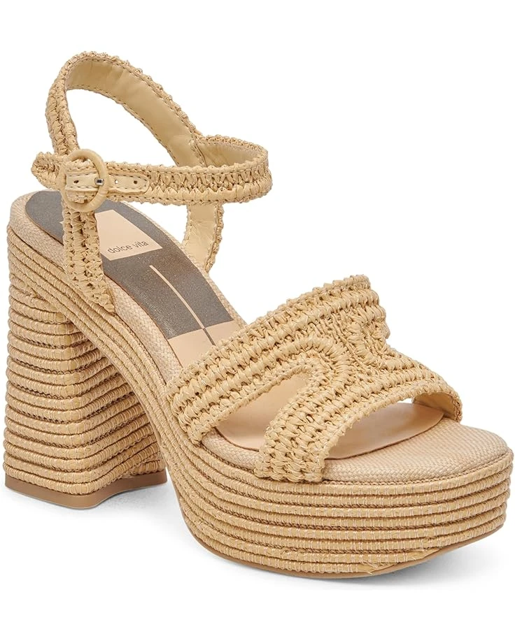 - Add a stylish touch to your look without compromising on comfort by wearing the Dolce Vitaยฎ Lacye sandals. The slip-on style sandals have a block-heel platform design, lightweight construction, and buckle closure. They have woven knit upper with intricate detailing all over, DMFA-free synthetic lining, and DMFA-free synthetic polyurethane insole for prolonged comfort.