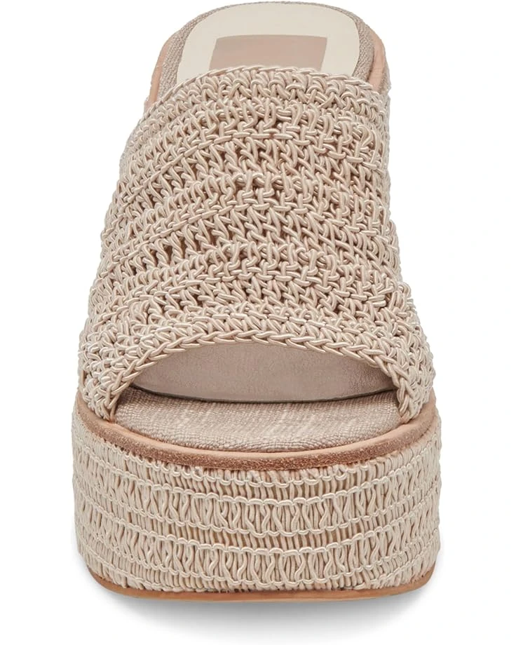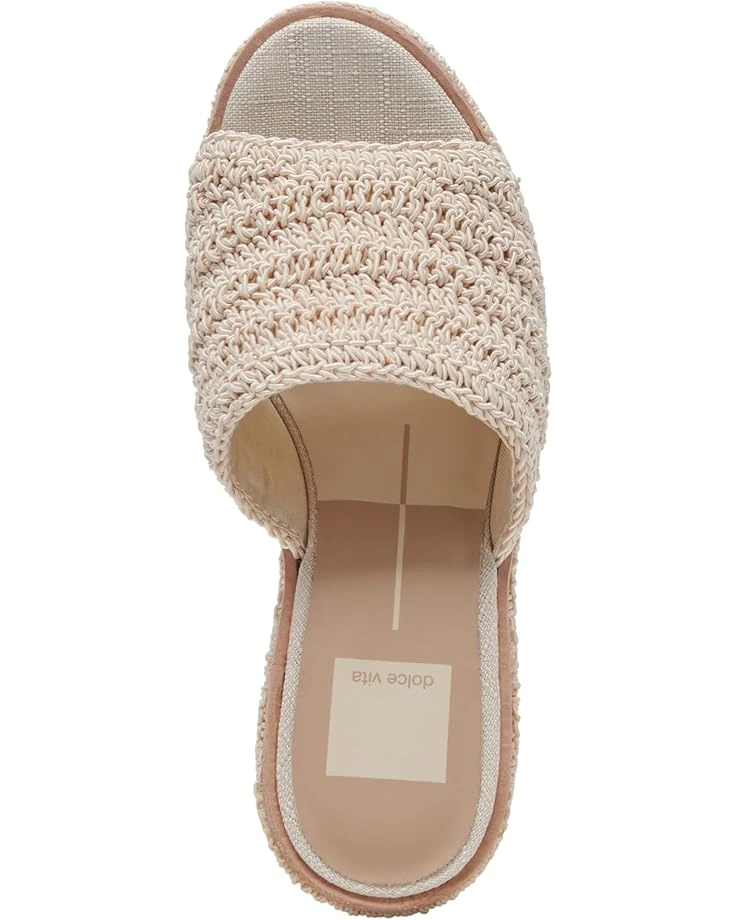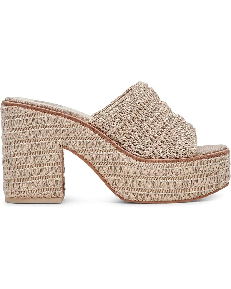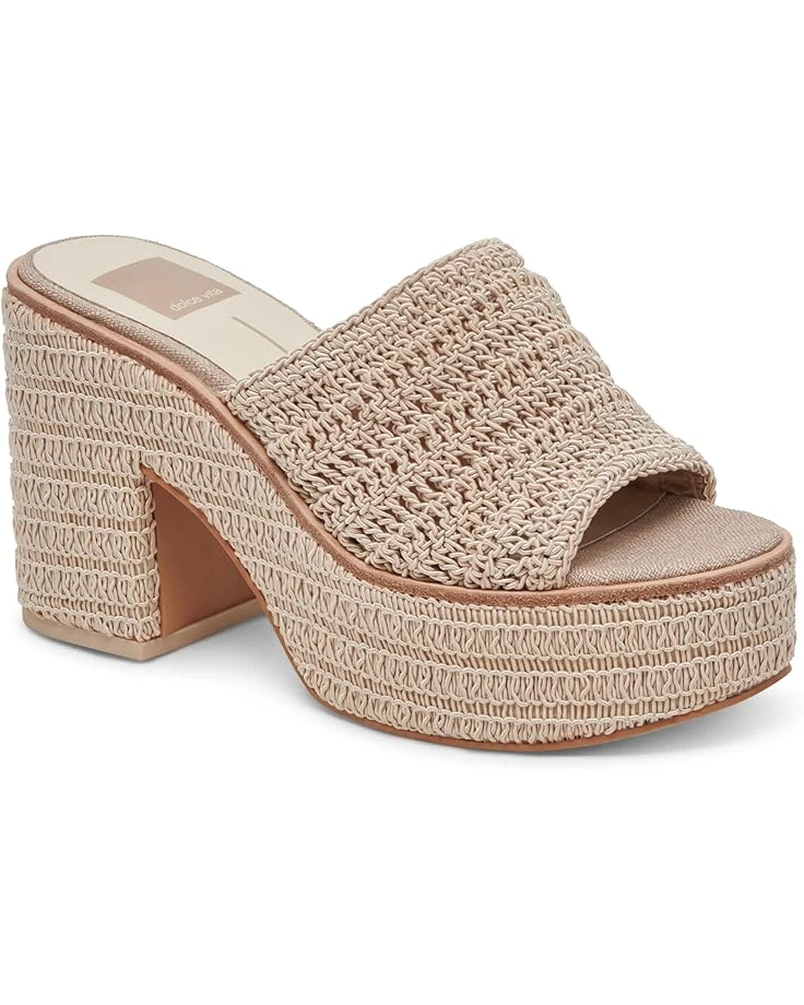 - Adorn your feet with the classic silhouette Dolce Vitaยฎ Ladin-025. Crafted from fabric upper, fabric lining and DMFA free synthetic PU insole, this pair of sandals features open round toe, fabric-covered block heel and slip-on closure. these sandals will transform your basic look into a fashionable glimpse.