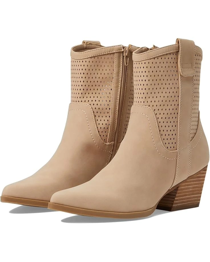 - Walk in confidence on the rough surface by wearing DV Dolce Vita® Kirby boots. The two-tone nappa polyurethane upper and nappa polyurethane lining makes it classy. A polyurethane footbed and side pull-tabs ensure ease of wearing for a long time. The shoes have a pointy toe and block heel.